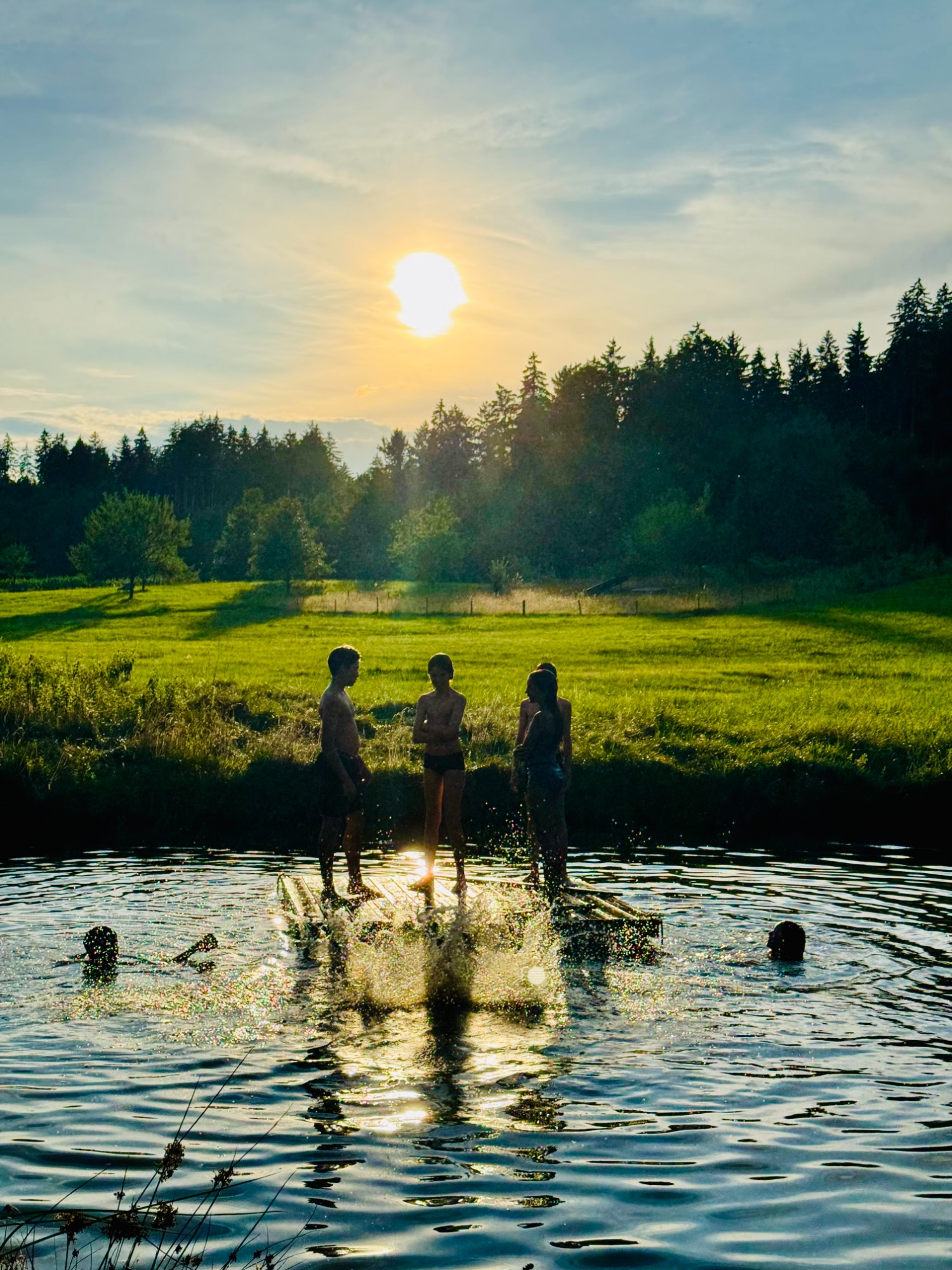 In herrlicher Lage im Grünen, umgeben von Wäldern, Feldern und Wiesen, mit viel Freiraum sind wir als einzige Gruppe im Seminarhaus Windschnur bei Prien/Traunstein im schönen Chiemgau zu Gast. Das weitläufige Anwesen liegt ruhig und idyllisch am Wald und bietet neben viiiiel Platz, einen Schwimmteich, Feuerstelle, Kletterwand, Trampolin und Schaukeln.