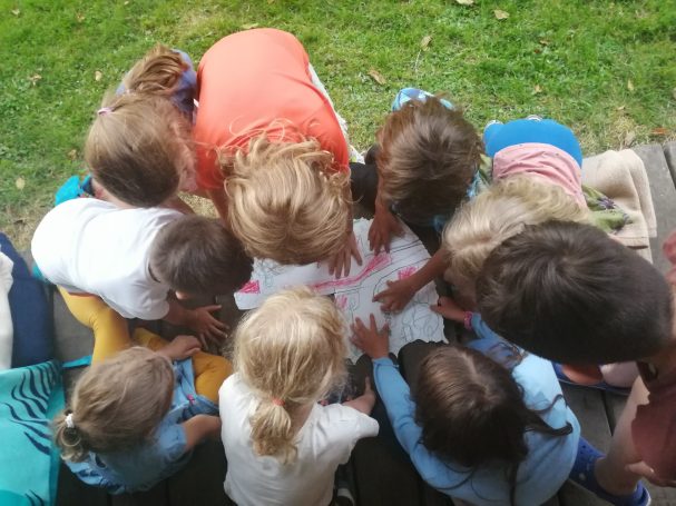 Während die Großen am morgendlichen Programm (Pranayama, Yoga, Meditation, Naturerfahrung) von 9-12 Uhr teilnehmen, werden die Kleinen im Zeitraum von 8.30-12 Uhr von geschulten Pädagogen altershomogen betreut. Die Kinder sind in der Natur unterwegs, um Schätze zu entdecken oder kreativ zu sein.